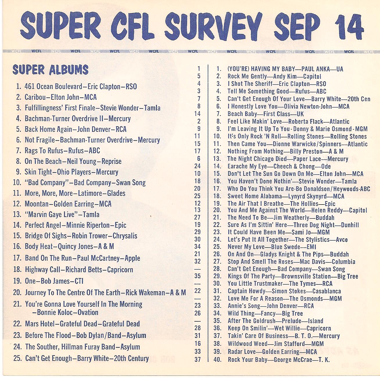WCFL-AM, Chicago, Ill. SUPER CFL SURVEY SEP 14, 1974