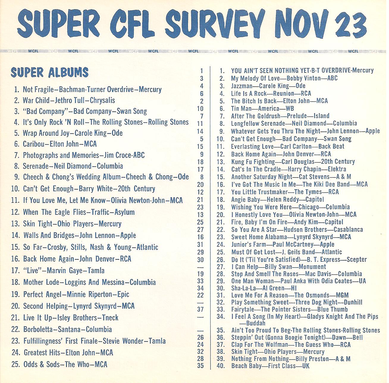 WCFL-AM, Chicago, Ill. SUPER CFL SURVEY NOV 23, 1974