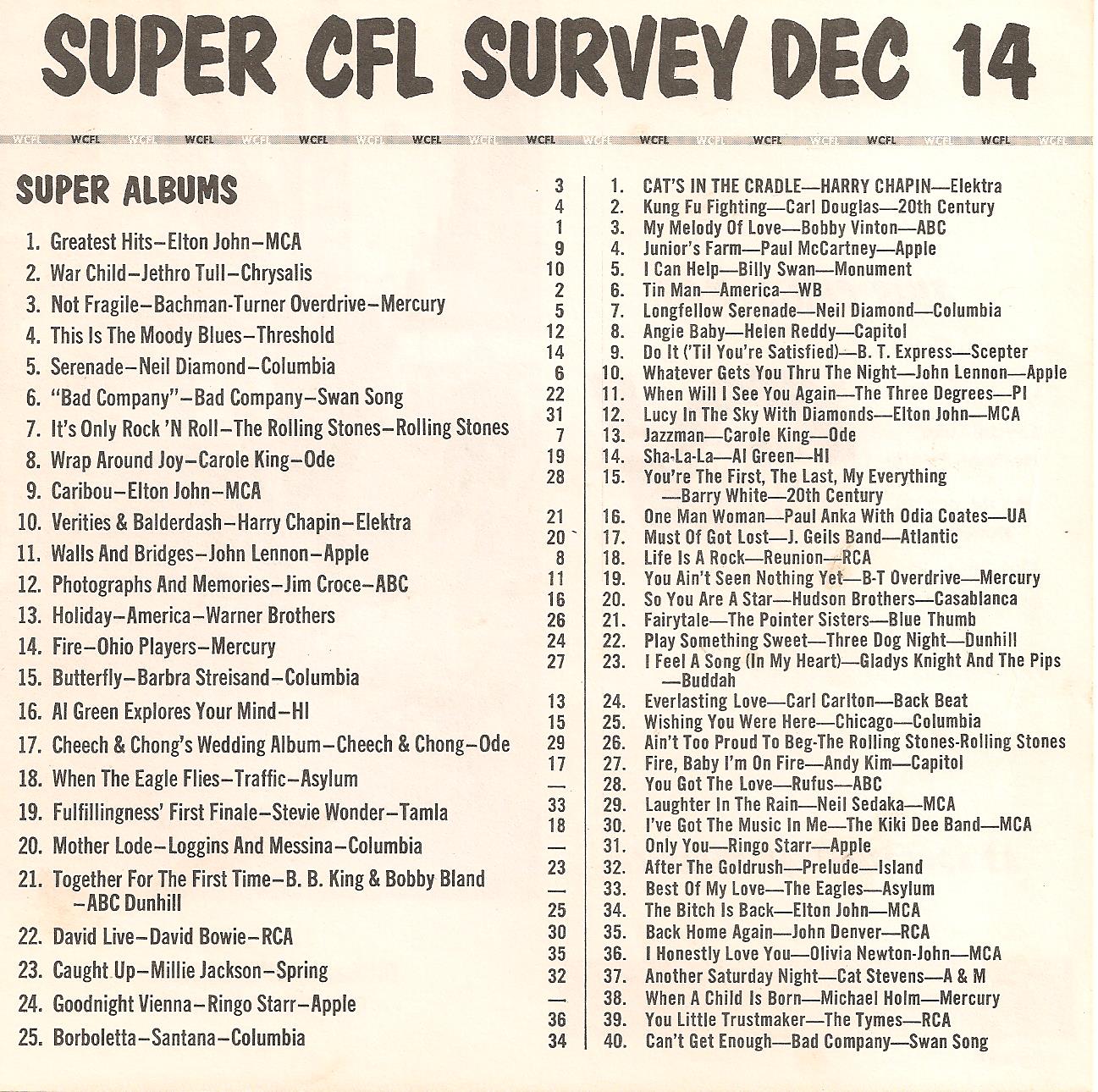 WCFL-AM, Chicago, Ill. SUPER CFL SURVEY DEC 14, 1974