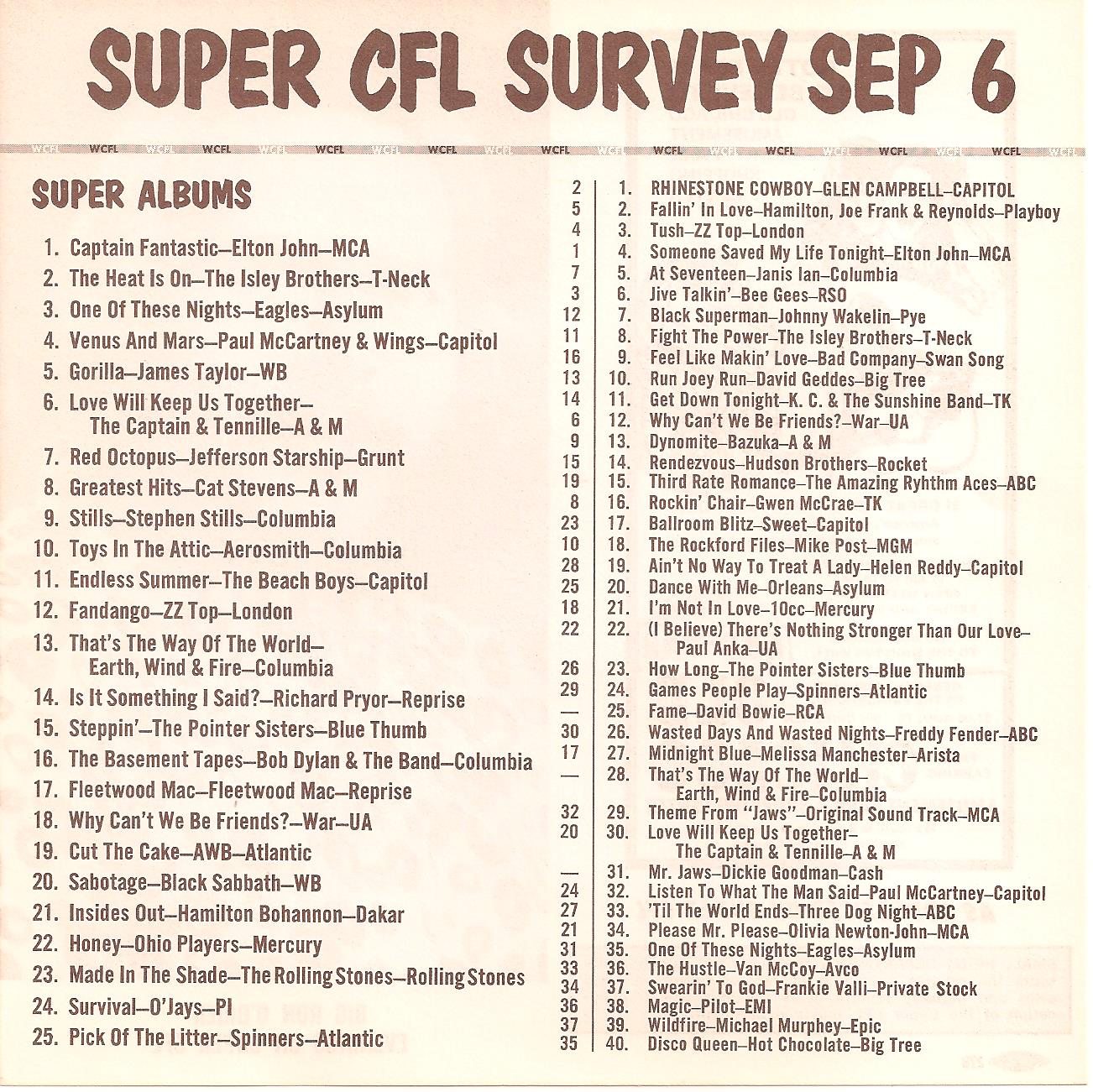 WCFL-AM, Chicago, Ill. SUPER CFL SURVEY SEP 6, 1975